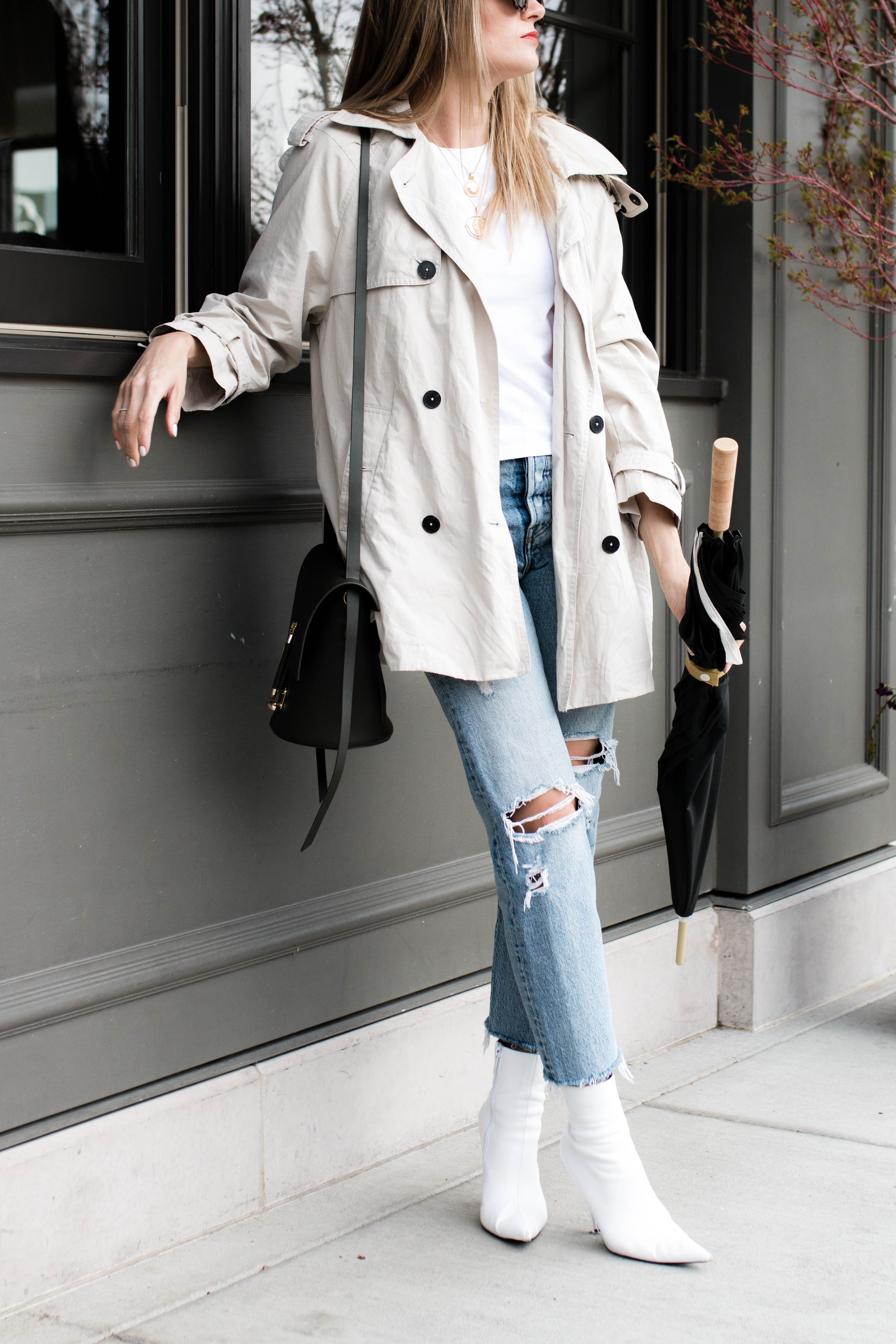 SHOP THE EDIT : CROPPED TRENCH | WHITE TEE | DISTRESSED DENIM | WHITE BOOTIES | CROSSBODY | TORTOISE SUNNIES | LAYERED NECKLACES