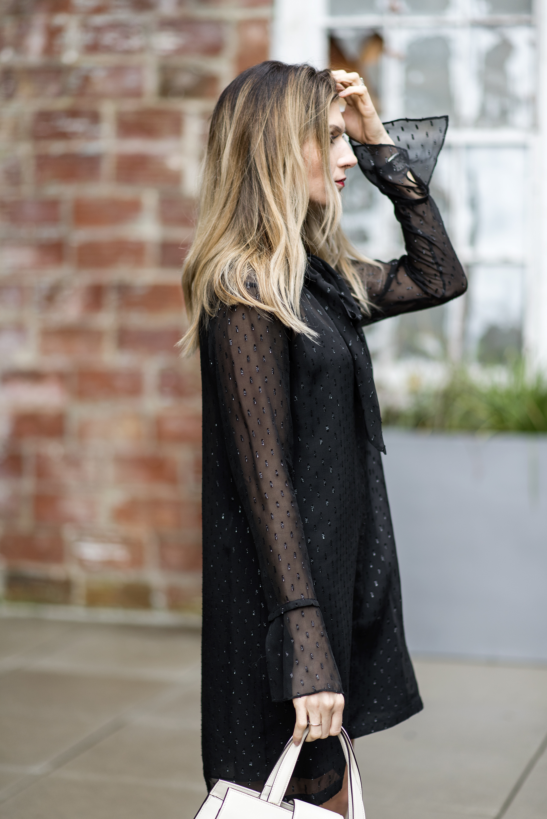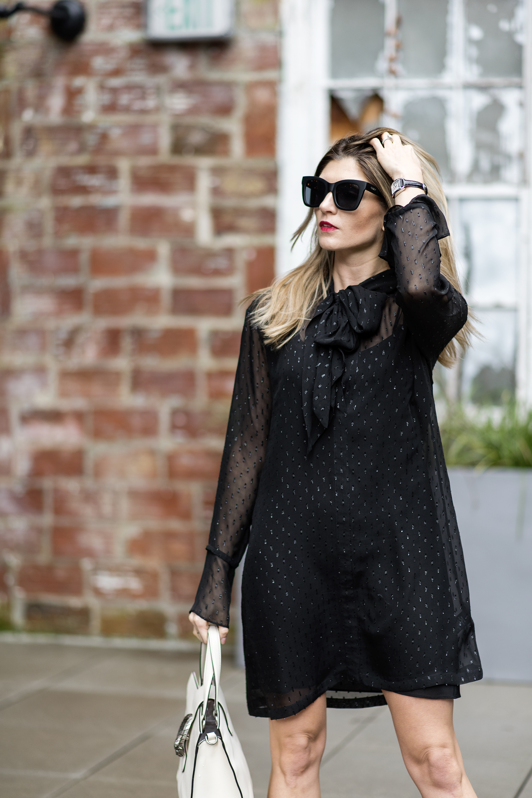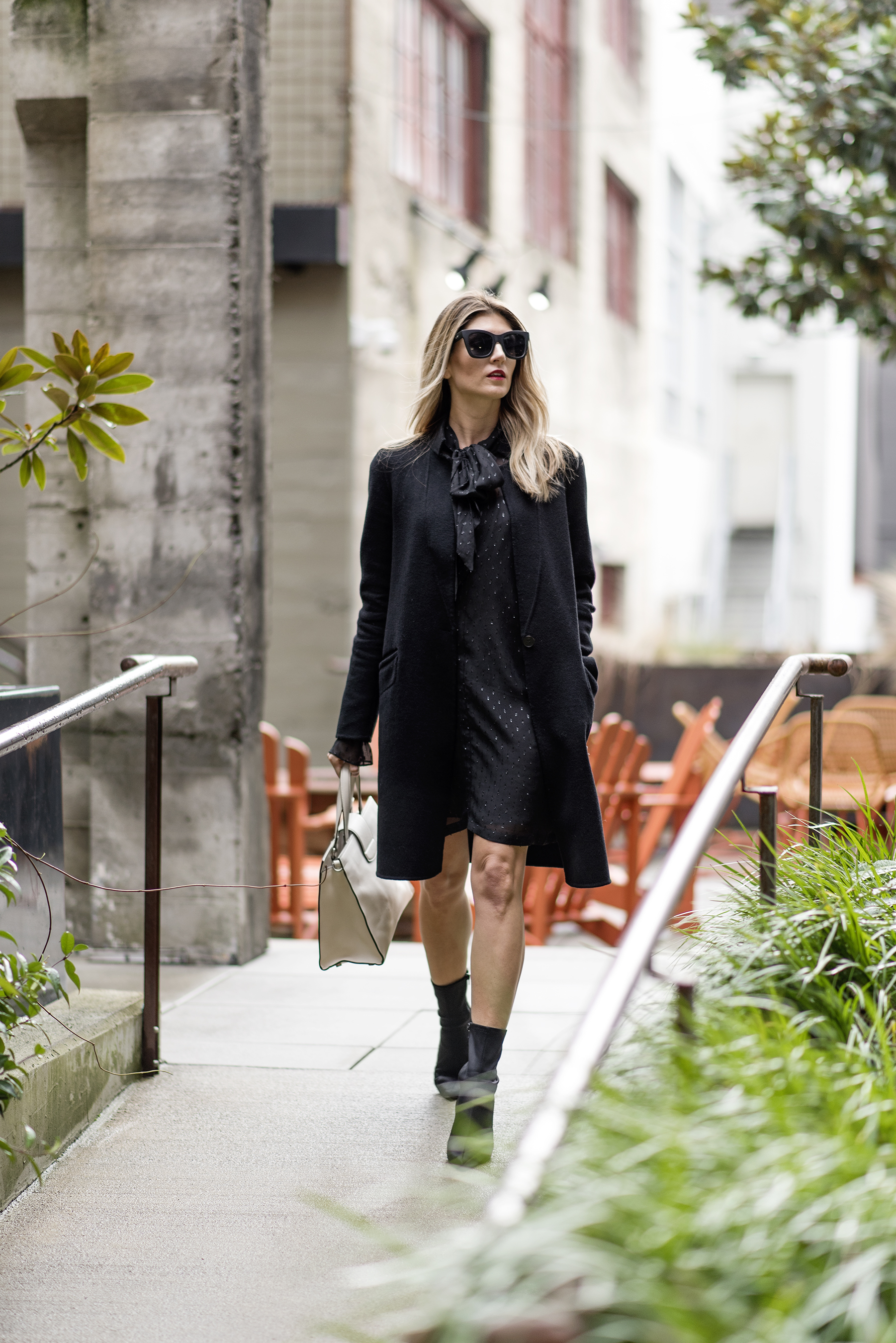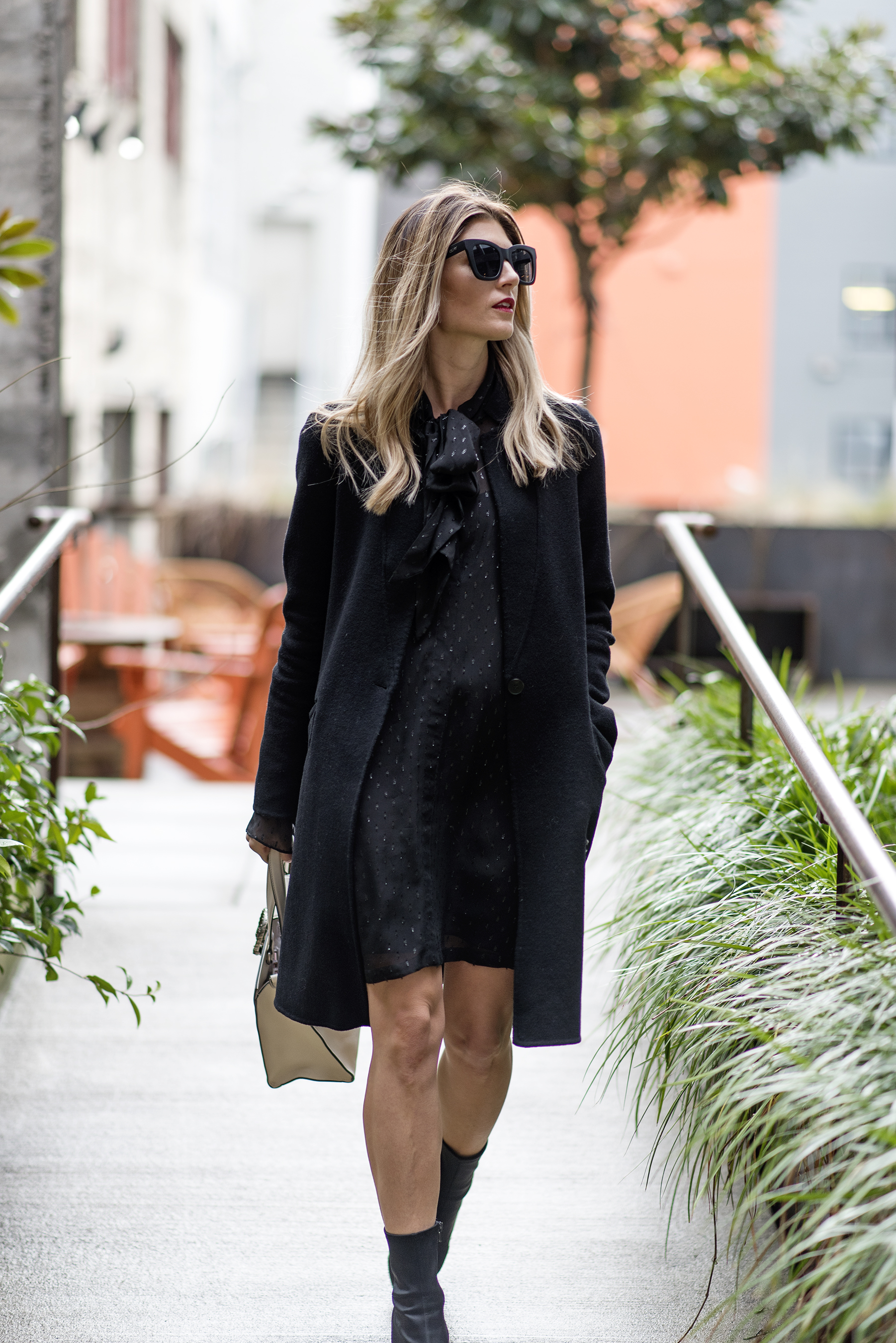 This outfit was pulled together ever so suddenly. It started off with the Theory tie dress I found on sale. My first Theory item and I’m happy I held out until I found something good (and on sale). It’s delicate, feminine, sexy for a shift dress (IMO) and is easy to layer and style.