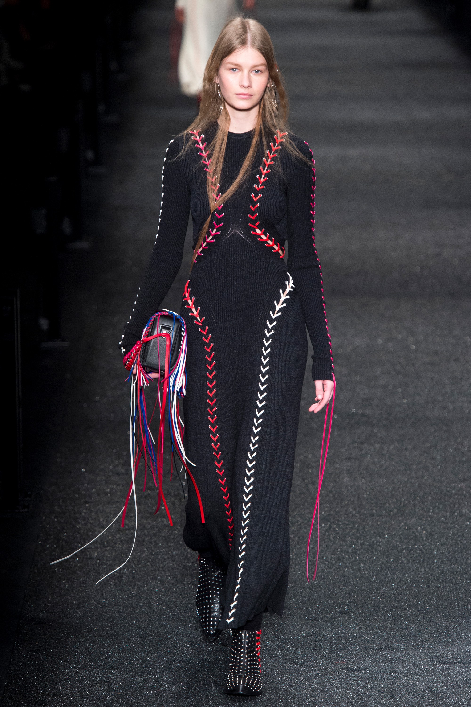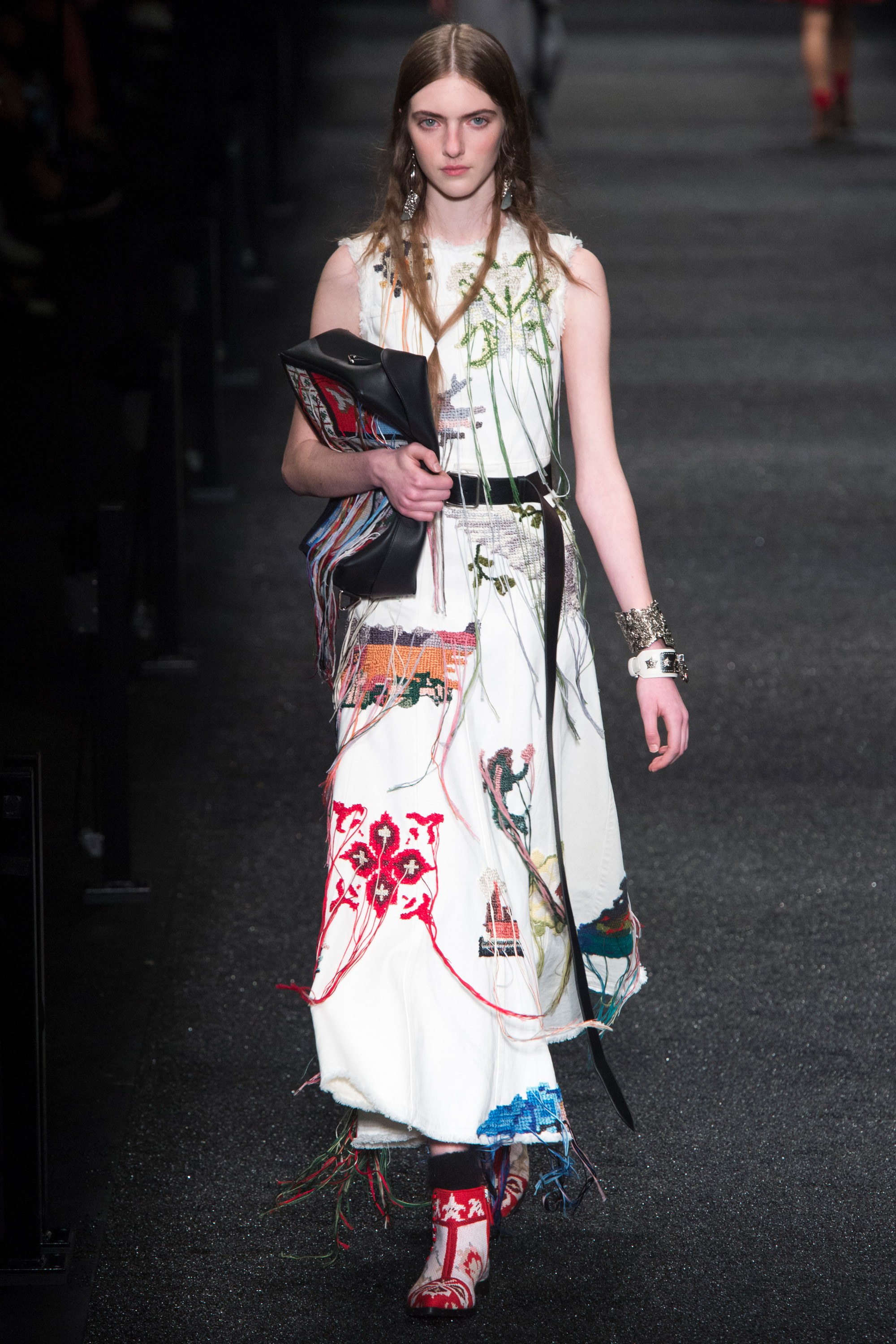 Alexander McQueen brought in the UK countryside with ribbons, sewn messages and asymmetric folds: